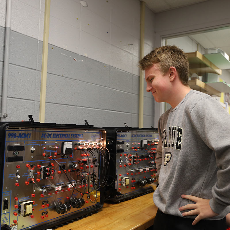 Students in the Industrial Maintenance Technician–Electrical pathway learn principals of advanced manufacturing. They learn industrial electrical fundamentals and key electrical principals. In the capstone, students learn about circuits and the programming of programmable logic controllers.